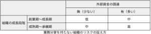 業務分掌を持たないリスクについてどのように考えらえるでしょうか。大きく分けると、組織の成長段階が前期(創業期〜成長期)の少人数規模で行う未成熟な事業を運営している場合かつ助成金を含めた外部資金の調達が無い(または少額)の場合はリスク低、その反対に成長段階が後期(成熟期〜承継期)の一定の人数規模で行う成熟した事業を運営している場合かつ外部資金を調達している団体の場合はリスク高と考えるべきでしょう。