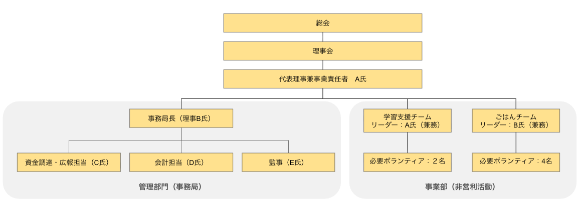 非営利団体の構成要素を「管理部門(事務局)」と「事業部門(非営利活動)」に大別した場合、二つの部門に同一人物が所属することがあります。